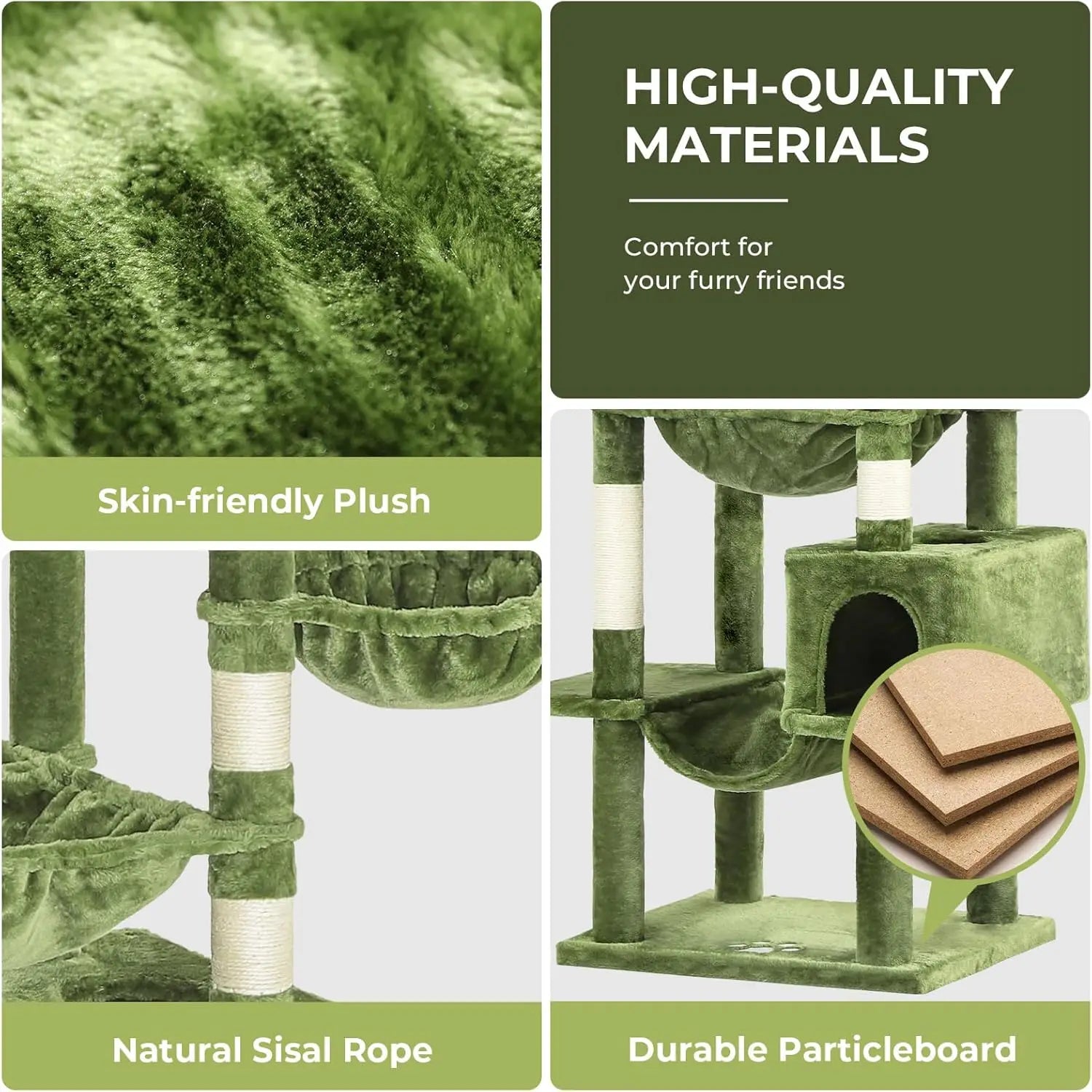 This cat tree is 76 inches high, fully satisfying the cat's climbing nature. The cat sleeps in the highest place to enjoy the first ray of sunshine in the morning and adopts a stepped climbing design, and the floor height is suitable for cats of all ages to climb up and down. Meanwhile, this activity center provides space for up to 7 cats to play and relax, each with their territory.