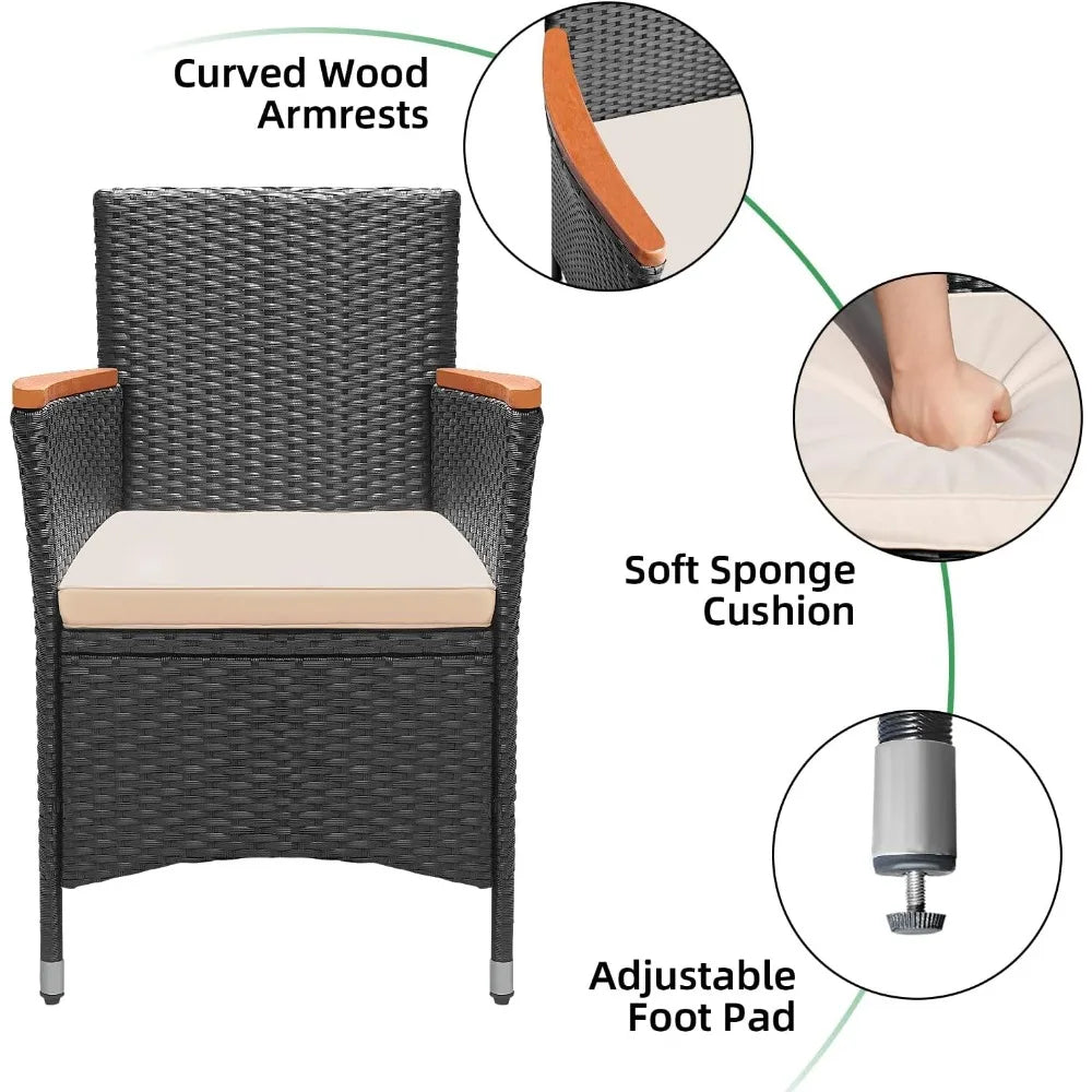 Acacia Wood Table Set with Cushions Wicker Chairs