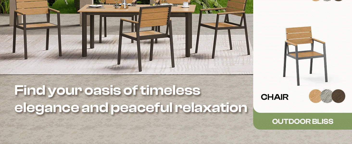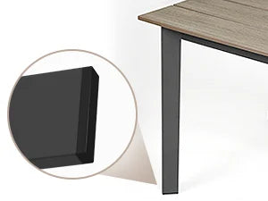 This patio dining set features an aluminum frame with weather-resistant coatings, which make it lighter and stronger than iron. Also, its HDPS wood-like panels are UV-resistant and fade-proof, ensuring long-lasting beauty. Compared to conventional metal furniture, the outdoor dining sets are more sturdy and ideal for outdoor use.