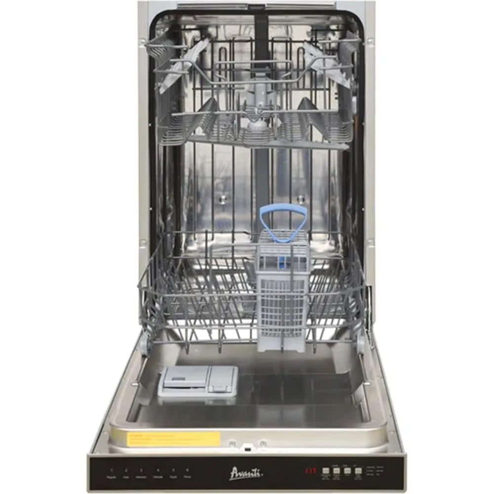 This Built-In Stainless Steel Dishwasher18 inches wide and designed to run at quiet, this compact dishwasher is ideal for offices, studio apartments, basements, RVs, tiny homes, rental rooms, condos, vacation homes, and more. It holds up to 8 standard place settings and features both a dishwasher silverware basket and a cup tray.