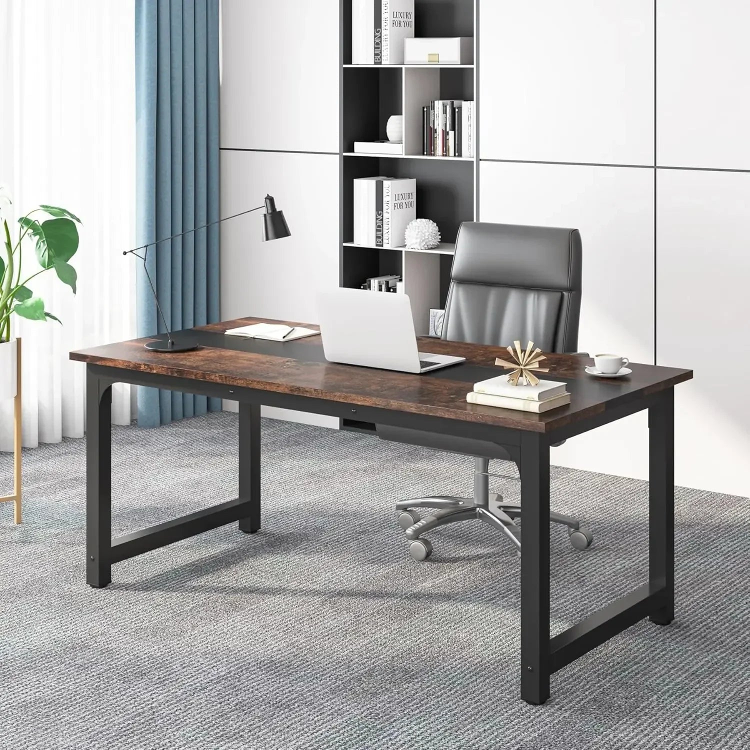 Our contemporary industrial style 63" executive desk is designed specifically for office spaces, combining practical storage solutions with elegant design. Constructed from thick, high-quality materials and reinforced with a heavy-duty steel frame and dual pedestals, it ensures unparalleled stability and longevity. The expansive desktop offers ample space and supports up to 200 lbs for all your work needs. Whether you're organizing files, managing projects, or working on creative tasks, this writing desk is the perfect solution for a productive and organized workspace.