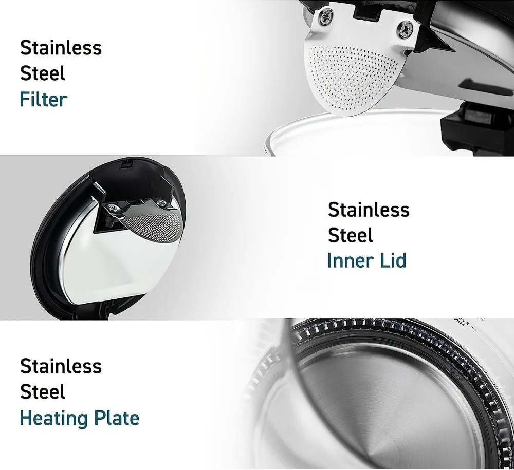 Boil-Dry Protection: An additional layer of safety is provided by the boil-dry protection feature, which automatically turns off the kettle if it detects no water inside, preventing damage and extending the product's lifespan.