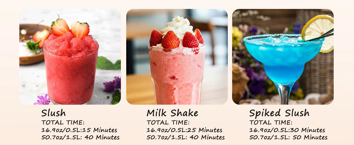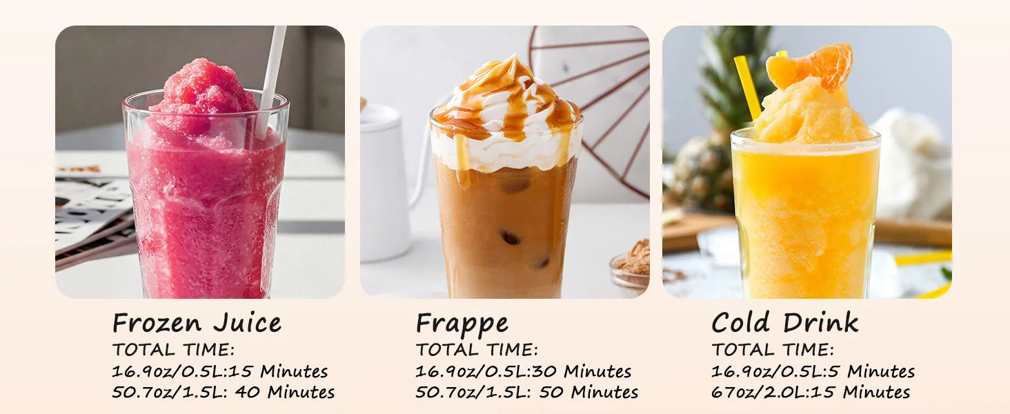 15-30 Minute Fast Freezing: Say goodbye to long wait times! Our powerful, energy-efficient compressor transforms liquids into slush within 15-30 minutes—no need for ice cubes or pre-frozen ingredients. Enjoy smooth, restaurant-quality frozen drinks anytime without skyrocketing your electricity bill.