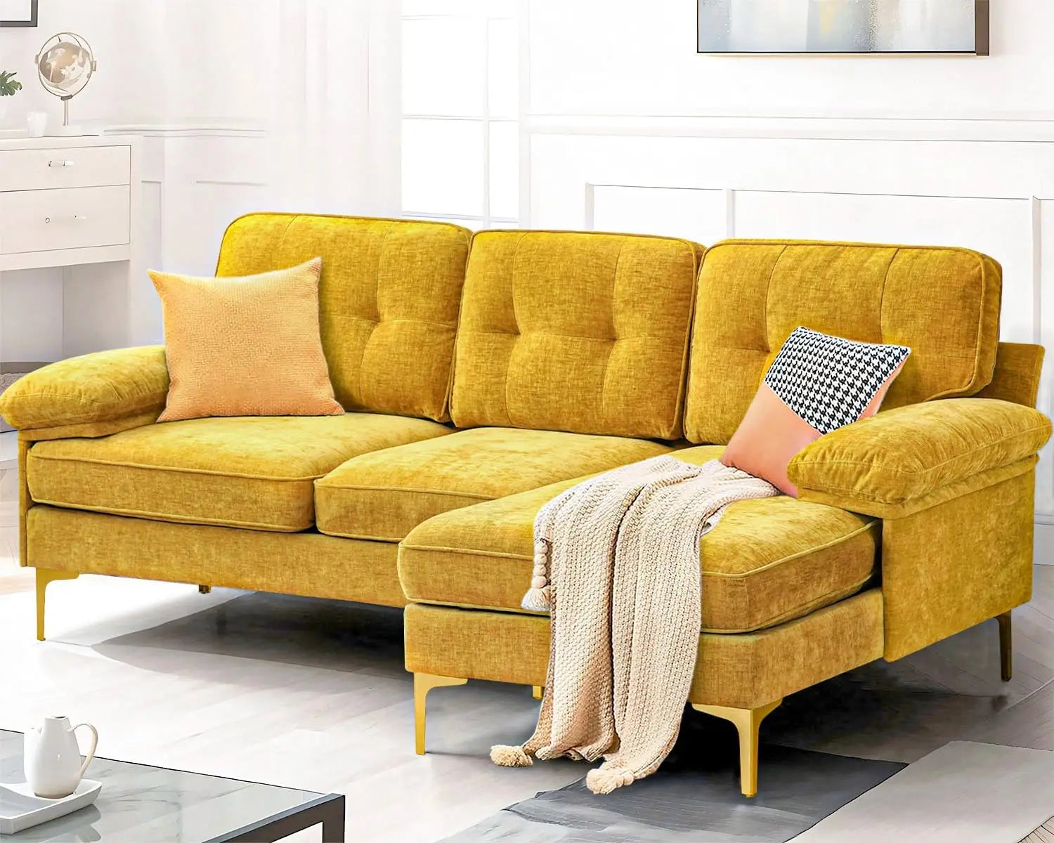 Modern styled chenille sectional sofa, changing the direction of the Chaise Lounge, Designed with the high elastic sponge, Sponge upgrade. High density, strong load-bearing capacity. The beige couch seat is comfortable, Relaxes your whole body, and fatigue disappears. Breathable chenille fabric with a unique texture close to the skin. The pillowcase is removable and easy to clean. This sectional sofa is durable in style and quality. This pet-friendly couch is comfortable without irritating odor, suitable for pregnant women and children.