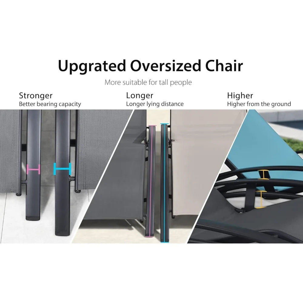 Oversized Lightweight Chaise Lounge Set with 2 Side Tables