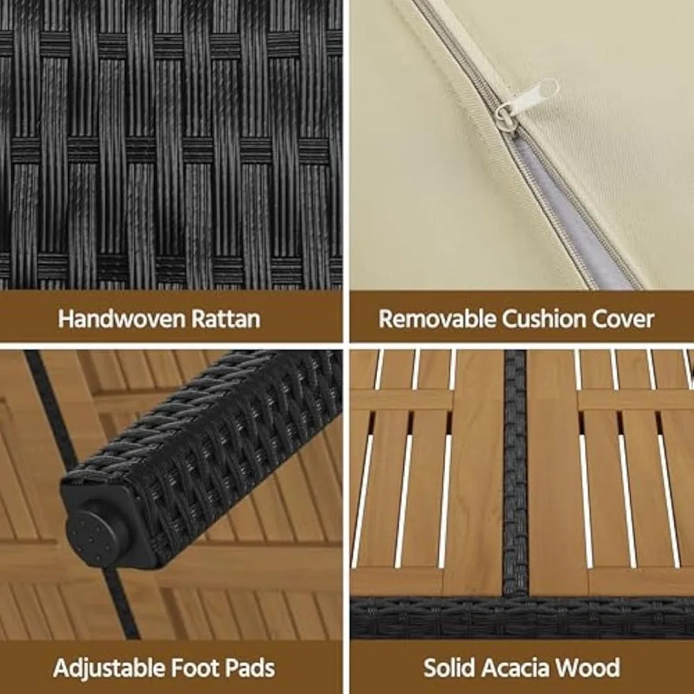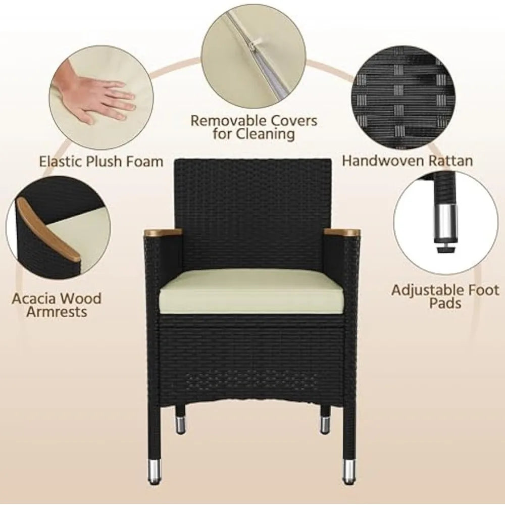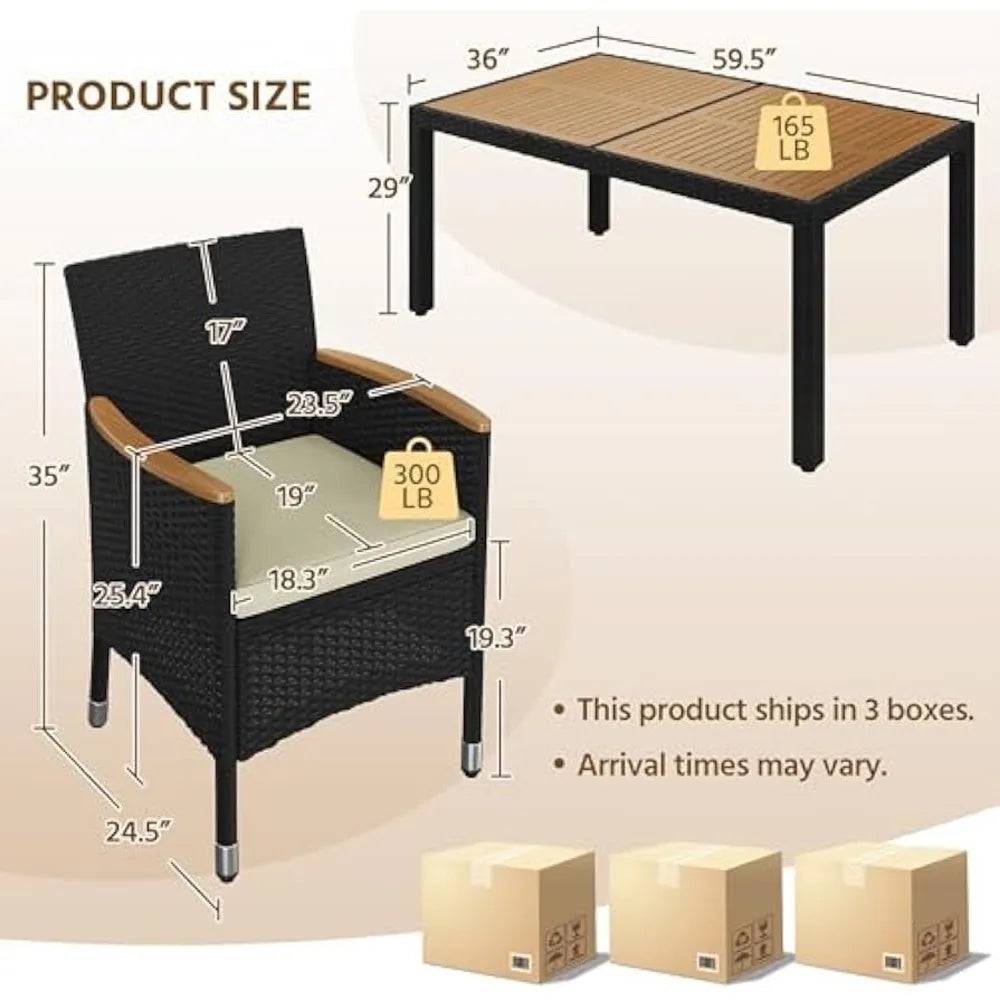 Durable Outdoor Construction: Made with all-weather PE material, sturdy acacia wood, and powder-coated steel, this rattan dining set provides reliable durability, handling all types of outdoor environments with ease.