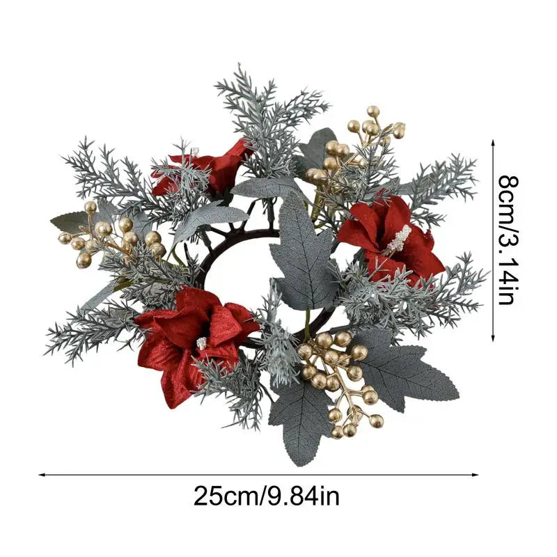 Transform your home into a festive haven with our holiday Candle Ring Wreath. This unique addition to your decor features a creative design with realistic and vivid artificial berries, flowers, and green leaves that simulate the essence of the season. Constructed with dependable PP and silk, these holiday candle ring wreaths are made to last. They are reusable, washable, and won't easily deform, ensuring long-term use for effortless holiday decorating.