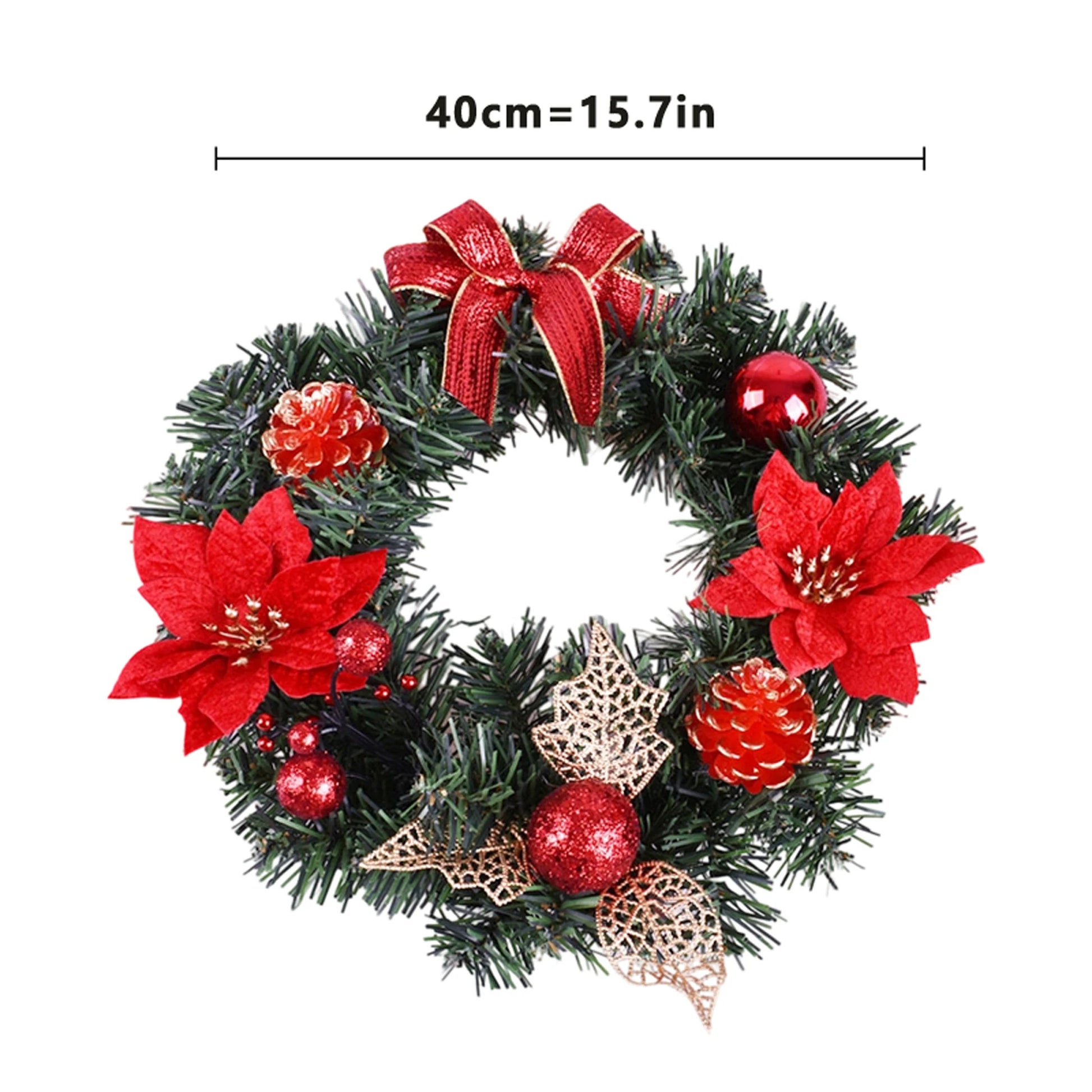 Red Bow, Poinsettia Pine Cone Festive Holiday Wreath