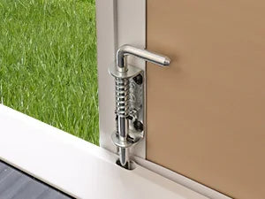 A stable Base frame not only makes it more stable but also increases the distance from the ground, preventing moisture. There are 2 upper and lower fixed door latches on the inside of the door, so you can decide whether to open one door or the whole door. The window allows the visibility of tools from the outside and enhances the aesthetics of the shed. Front and rear vents for air circulation and edge protection make this outdoor tool shed much safer from injury. High Quality Material & All-Weather Use!