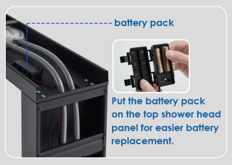 Shower Panel with LED lights: This shower panel has battery powered LED lights, they shine subtle blue lights from above to create a romantic, soothing atmosphere for bathing; Rain shower with 60 pcs rubber nozzles offer full body coverage, so you don't need to turn around while showering; Waterfall shower deliver wide water flow to easily wash off soap and shampoo with minimal effort.