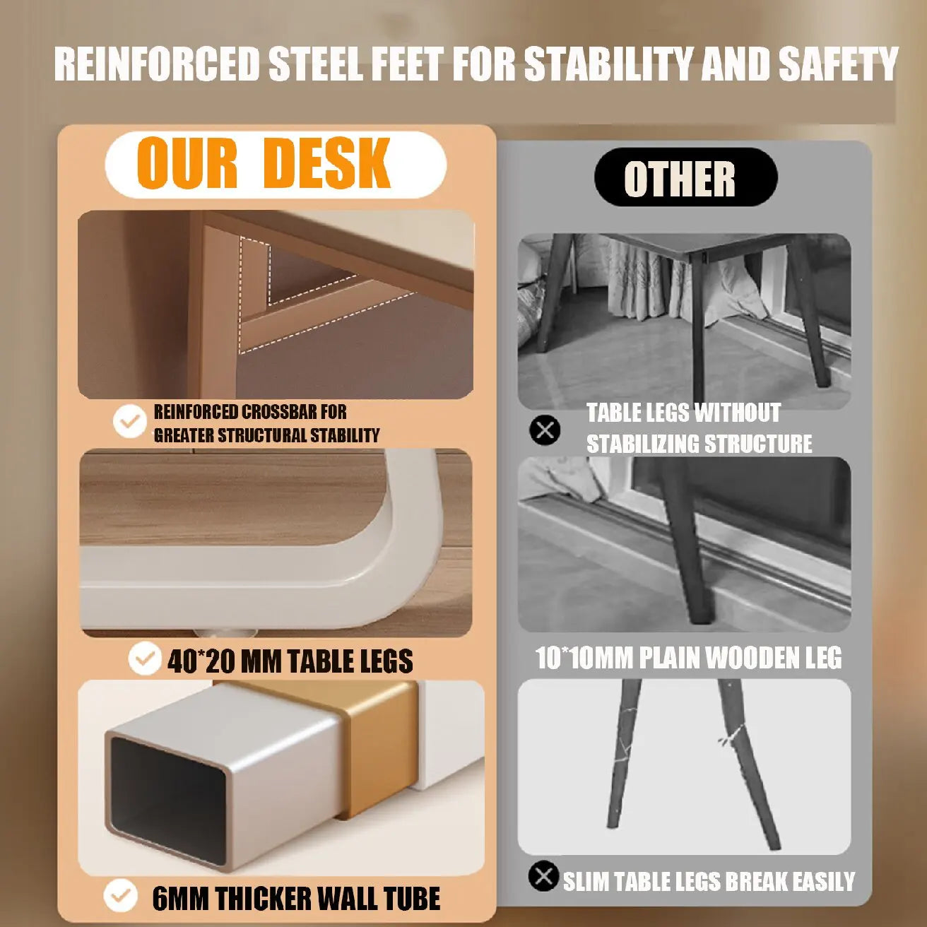 This modern computer desk suitable for bedroom, living room, study, kitchen, office, it can be a writing desk, study desk, computer desk, office desk, game tables, dining tables compared to most of the rectangular table tops on the market, we have done a rounded design in the corners, which is to avoid sharp sharp corners of the table to the body caused by collision injury with metal legs and adjustable leg pads, made the desks keep stable even on uneven floor.