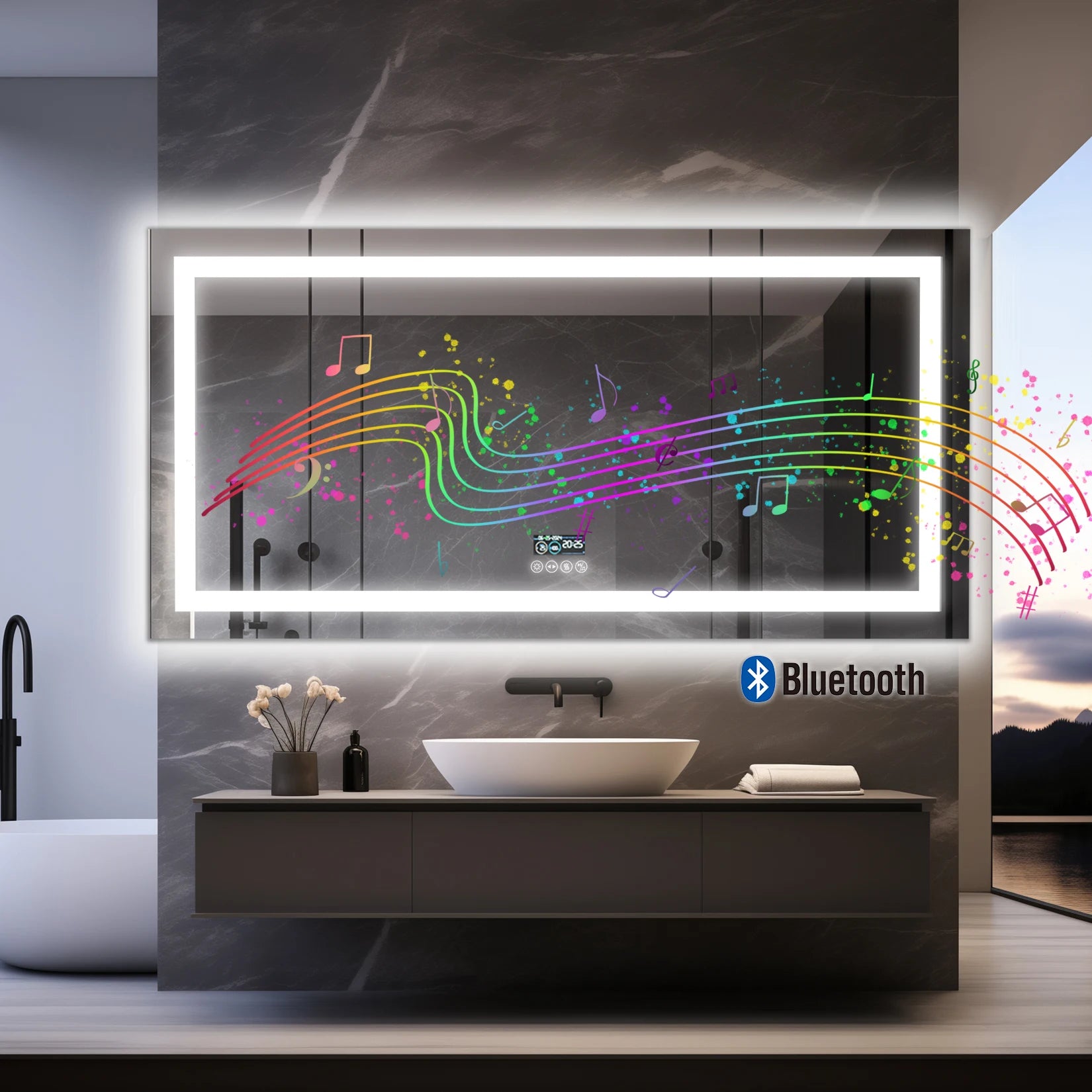 Bluetooth Speaker: Integrating Bluetooth connectivity and an NdFeB loudspeaker into this lighted bathroom mirror offers flexibility and more convenience. It enables users to stream favorite music or podcasts from smartphones when bathing, creating a more enjoyable and relaxing environment.