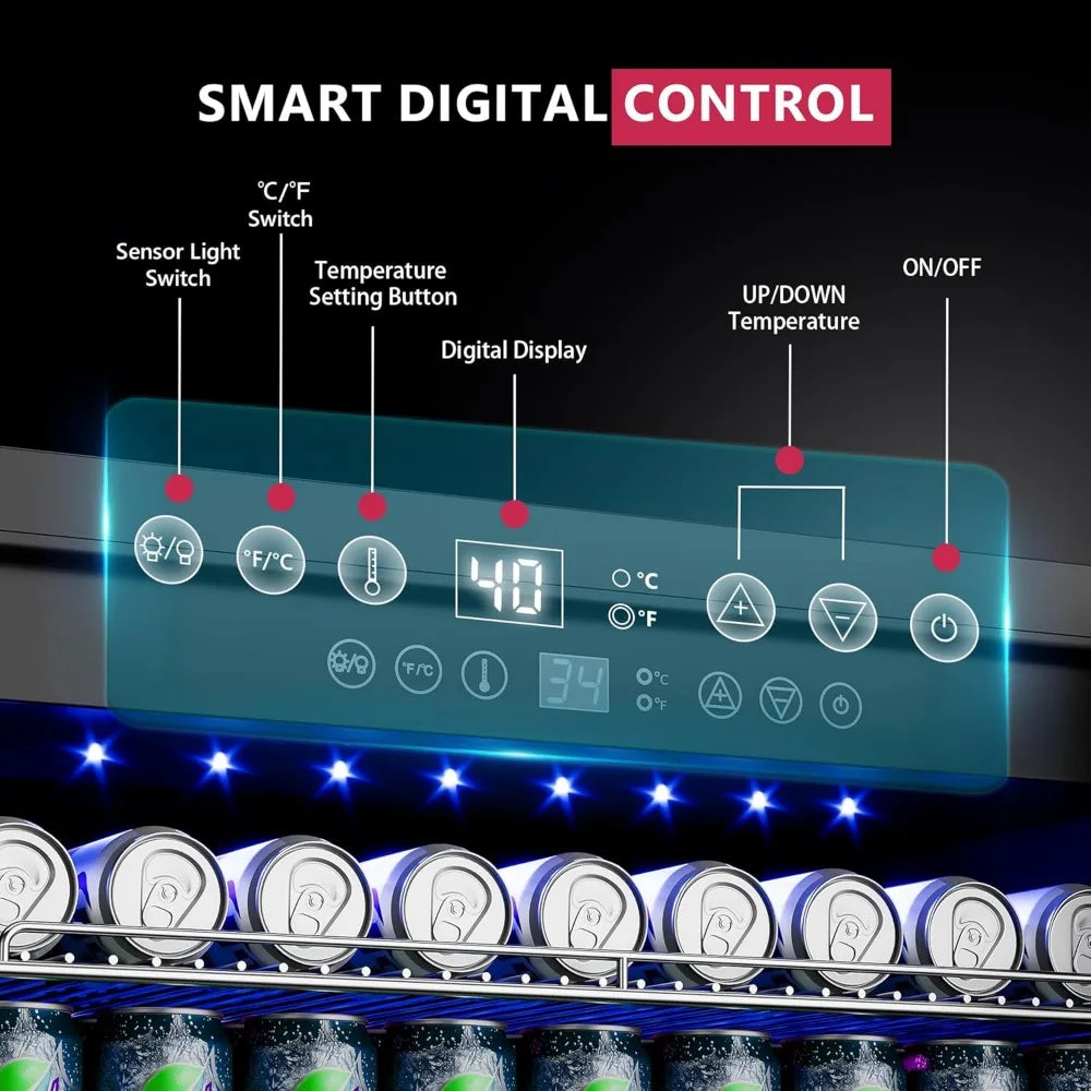 EXTRA LARGE CAPACITY - 24" inch beverage refrigerator, beverage cooler, holds 180 cans of beverages. You can refrigerate different sizes of soda, beer, and wine. Meanwhile, 3 removable shelves allow for height adjustments to make the space fit your different-sized beverages, helping you better plan your refrigerator outdoor refrigerator storage space.