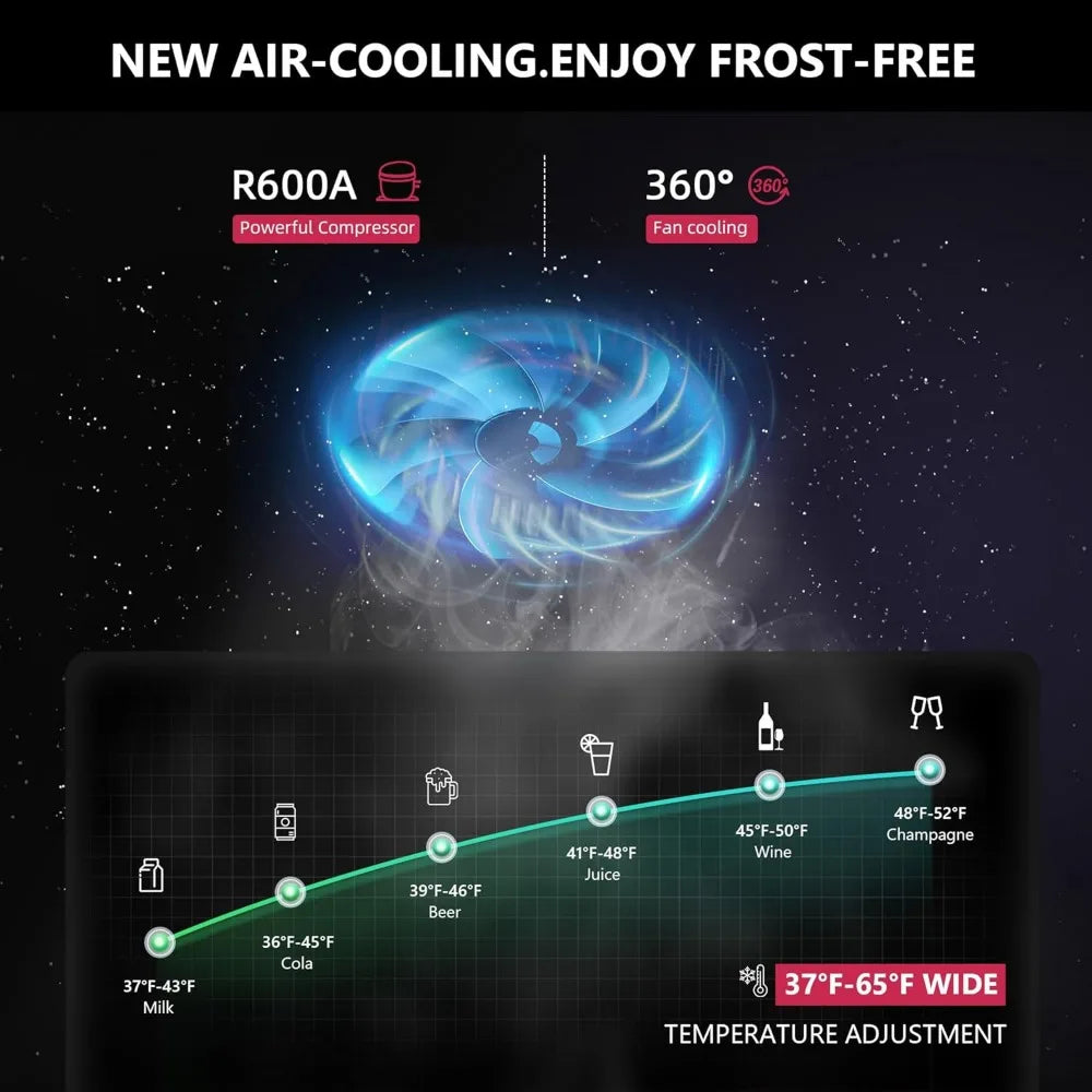 This undercounter refrigerator 5.3 Cu Ft. is made of 304 stainless steel, which makes the outdoor refrigerator for patio refrigerator resistant to corrosion, rain, and rust. In addition, its front air outlet design makes it perfect for indoor or outdoor, under-counter built-in applications, enabling the cooling of beverages in outdoor kitchens, house parties, offices, and indoor kitchen counters.